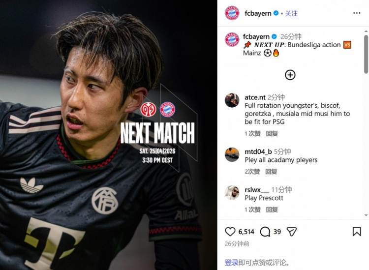 4月24日讯 北京时间4月25日21:30,2025-26赛季德甲联赛第31轮,拜仁将客战美因茨。