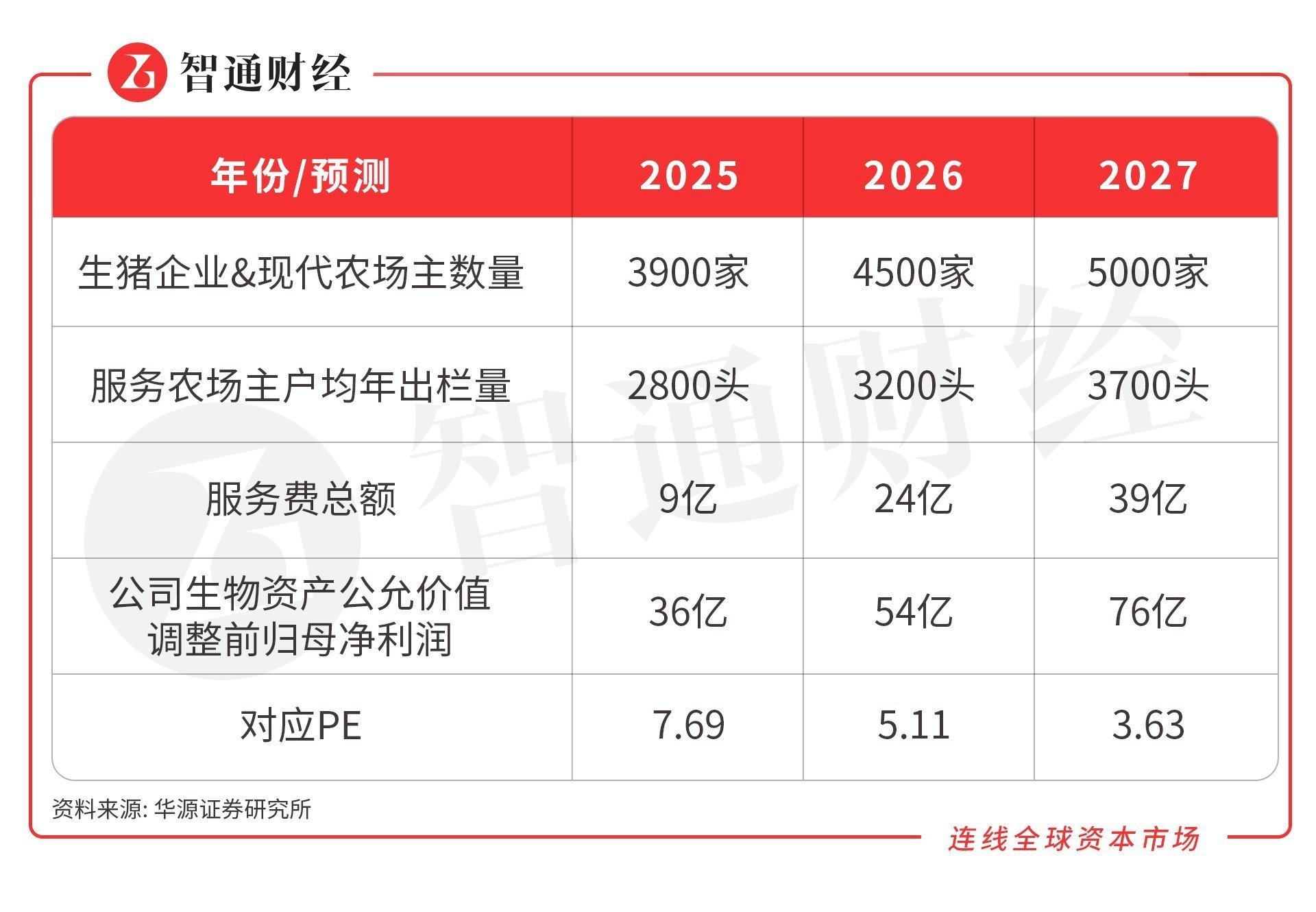 据华源证券研报测算,综合德康响应国家战略、技术领先、食品安全规格高、发展速度快、轻资产高回报、逆周期布局能力、“平台+生态”战略转型速度等方面均已领跑行业,预计未来公司自由现金流与利润比值有望维持较高水平。具体到盈利水平上,预计2025-2027年,公司生物资产公允价值调整前归母净利润为36亿元、54亿元、76亿元。而基于上述优异表现,华源证券也将给予德康“买入”评级。