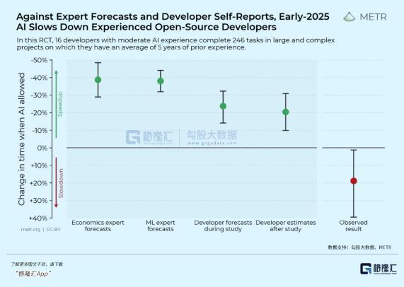 相比于纯人工,借助 AI 工具预测快 40%,实际上却慢了 19%。